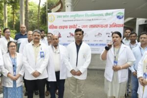 सैफई : उत्तर प्रदेश आयुर्विज्ञान विश्वविद्यालय सैफई में गुरुवार को ‘बेसिक लाइफ सपोर्ट – जन जागरूकता वॉकाथॉन’ का शुभारंभ विश्वविद्यालय के प्रति-कुलपति प्रो. (डॉ.) रमाकांत ने हरी झंडी दिखाकर किया।
