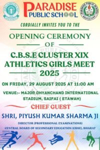 सैफई (इटावा) : मेजर ध्यानचंद अंतरराष्ट्रीय स्टेडियम सैफई में 29 से 31 अगस्त तक सीबीएसई क्लस्टर-19 एथलेटिक्स गर्ल्स मीट 2025 का आयोजन होगा। तीन दिवसीय इस प्रतियोगिता में विभिन्न विद्यालयों की छात्राएं दौड़, कूद और थ्रो समेत एथलेटिक्स की अलग-अलग विधाओं में अपना कौशल दिखाएंगी।