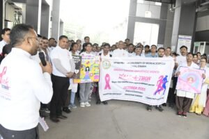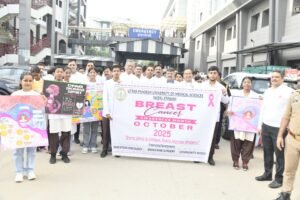 सैफई : उत्तर प्रदेश आयुर्विज्ञान विश्वविद्यालय, सैफई में गुरुवार को स्तन कैंसर जागरूकता माह के अवसर पर ‘गुलाबी अक्टूबर’ जागरूकता रैली का आयोजन किया गया। कुलपति प्रो. (डॉ.) अजय सिंह ने गुलाबी झंडी दिखाकर रैली को रवाना किया और कहा कि “पिंक अक्टूबर” का अर्थ है स्तन कैंसर जागरूकता माह, जो हर वर्ष अक्टूबर में मनाया जाता है। इस माह का उद्देश्य स्तन कैंसर के प्रति लोगों में जागरूकता फैलाना, प्रारंभिक जांच और रोकथाम के महत्व को रेखांकित करना है।